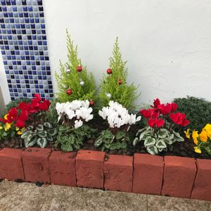 先輩宅の門柱下の花壇を依頼され、夏仕様から、クリスマス仕様に変更してみました!レンガをはめてみたのがいいアクセントになりました( ^∀^) 素人ですが…個人的には満足です!