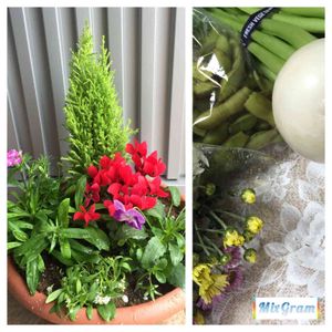 園芸センター祭りにて 寄植え講習 500円 大きな蕪5個 100円 菊の花5本 200円 枝豆(黒)2袋 200円 しめて1,000円‼️ 台風の雨の中でしたが 良い買い物でした😁👍