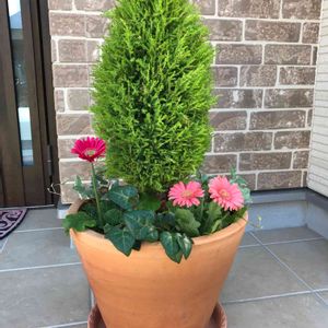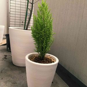 雨だからお花の写真撮れない……。 我が家のゴールドクレストは全部で3つ✨ 1つはクリスマスツリーに使えるくらいの大きさに。 1つは寄せ植えに。 そしてこの子は、丸くトピアリーするつもり✨ あと10cmくらい背が伸びてからかな。