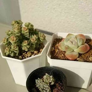 ルノーディーンとバークレー錦に続いて新たに4つの錦さん達を御迎えしました。😊 多肉1年生の自分は徒長させてもいいから枯らさないように頑張りたいと思います☆