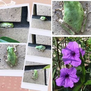 我が家の庭で🐸カエルがお花見をしていました😍☺😂 ♀