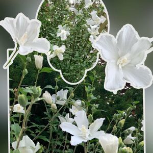 💕白い花シリーズ 💕 ①⑵⑶ ムクゲ 大徳寺 白 未だまだ…咲き続けますよ ⑷ ハツユキソウ 一輪は庭で('∇^d) ナイス☆!! もう一輪は 小さいჯ ιı र ιıけれど 🪴鉢で どちらもこぼれ種から ⑸ ペチュニア ギュギュ 切り戻し成功👏 また咲き出してます☝️👏 皆んな大好きだよ❤️(◍¯∀¯◍)😊