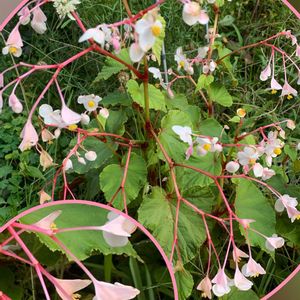 💕今年は花は 乱れ咲 💕 (秋海棠 シュウカイドウ) 我が家のは 薄いピンクの花 可愛い小さな花も 素敵(ღ*ˇ ˇ*)。o♡ でも……私は 花より葉っぱが好き❣️ 裏は赤いのよネ❣️