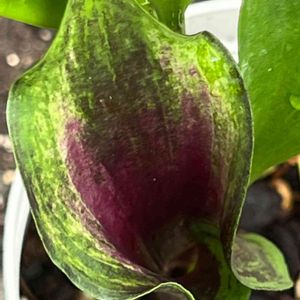 今日のお花カラー キャプテン カルーソ色付きました 黒っぽい紫色のインパクトが強く、庭で目を引きます🖤 今年2回目の色付きで、鉢植えのカラーがタイムリー‼️