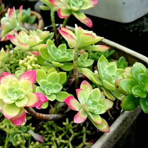 「小さめのプラ鉢が欲しいなぁ」 と、タニ友さんがおっしゃるので、 購入後に植え替えした後の お店のプラ鉢をお届けしました💨 うちに山程あるプラの空き鉢🗻 文字通り山積みしてあるのですが、 いい加減何とかせねばだったので、 再利用していただけて助かりました 画像はタニ友さんが、お礼として 帰りに持たせてくれた多肉🌱🌵🌱 「海老で鯛を釣る」 と言う言葉がありますが、 リサイクルで鯛を釣ってしまいました いただいた鯛じゃなかった多肉を、 ご紹介させていただきますね クロチャン、フトッパラスギルヨ ( ˘ ³˘)🐟 時計回りで🕐 【グラプトベリア属 桃月】 Graptoveria 'Momotsuki' 【クラッスラ属 フスカ】 Crassula fusca 和名 赤鬼城・赤幻城 【クラッスラ属 火祭り】 Crassula capitella ssp. thyrsifolia 'Flame' Crassula capitella 'Camp Fire' Crassula americana 'Flame' 別名 キャンプ ファイア 【セダム属 ルテオヴィリデ】 Sedum luteoviride 別名 ルティア・ルテア 【セデベリア属 レティジア】 Sedeveria 'Letizia' 【エケベリア属 ゴールデングロウ・ゴールデングロー】 Echeveria 'Golden Glow' 【クラッスラ属 ディジェクタ】 Crassula dejecta jacq Crassula dejecta 和名 天狗の舞 流通名 ドイリー クラッスラ Doily Crassula 【セダム属 ルテオヴィリデ】 Sedum luteoviride 別名 ルティア・ルテア 【グラプトベリア属 ティテュバンス】 Graptoveria 'Titubans' 和名 白牡丹(はくぼたん) 別名 プロリフェラ センター 【エケベリア属 七福神】 Echeveria 'Shihuku-jin' 和名 七福神