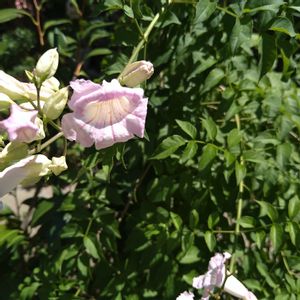 2023/08/06 毎日お買い物行こうかと通る道で… 可愛いピンク色のノウゼンカズラ パクッ ・・・ お口開けてます🤭👼