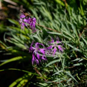 今日のお花 タカネナデシコ ナデシコ科・ナデシコ属 エゾカワラナデシコの高山型変種で葉や茎が白っぽいのが特徴で中部山岳国立公園等で自然公園指定植物にされています