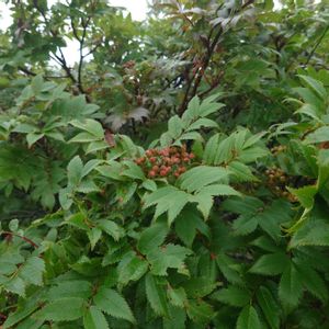 ナナカマド(七竈) バラ科 ナナカマド属 花期 5~7月 果期 9~11月 3~12m 落葉小高木~高木 在来種 高地では小低木となることが多い こんなに近くで眺めたのは初めてでした(笑) 葉は奇数羽状複葉 側小葉は披針形~長楕円形で4~8対(全体9~17枚) 葉縁は鋸歯または重鋸歯 果実(ナシ状果)は球形で直径7~8mm 明るい橙赤色~赤色に熟す 亜高山~高山帯に咲くものがいくつかあるようですが葉の様子からナナカマドでいいかなと思いました✨ 間違っていたらごめんなさいm(_ _)m 身近では街路樹として植えらているものをよく見ますが、車中からしか眺めたことがなかったです。。。🥹テヘッ