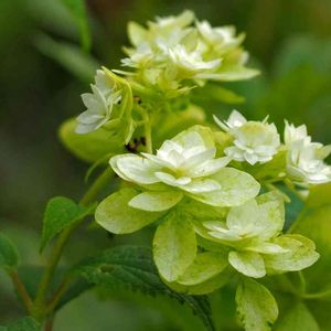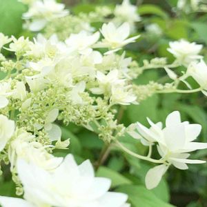 長〜いお付き合いのコレもアナベルさんです🎵 今年も楚々と豪華に?長く楽しませてくれました💖 昨年のコメントコピー⬇️ ✩.*˚ヘイズスターバースト✩.*˚ ユキノシタ科(アジサイ科) 耐寒性低木 落葉樹 ■ 別 名 : ハイエススターバースト 八重咲きアナベル、アメリカアジサイ、アメリカノリノキ など 初夏~夏 1.2m前後 耐寒、暑性 : 強 極寒地ok やや半日陰 耐乾性 : やや弱い 耐えるが花が小さく葉色は薄くなる 耐湿性 : 強い 多少湿気がある方が伸びやかに育つ 剪 定 : 花後から春の芽吹き前まで可能 肥 料 : 春か秋 必要に応じて 増 殖 : 挿し木 消 毒 : 目立った病害虫無し ■ 原産地 : 北アメリカ(原種の主な自生地) 庭木 生垣 大鉢仕立て 八重咲きのアナベル。 淡いグリーンから白に変化 再びグリーンに変わる(花期長) アナベル同様に強健、年々花芽が増 とても細かい花が密生して大きなドーム 咲き始めは外側から開花、徐々にボール状 花後は再びグリーンに変化し秋頃迄楽しめる。 冬に黄色く紅葉し、その後落葉 ● 強剪定 花後から冬に地際、数節程度残してばっさりがプロのやり方 春に伸びる枝数が限定され、少し花数は減りますが、その分、新枝に勢いが出て、花がとても大きくなります。花丈が揃って咲くので、放射状の美しい姿になり、ボリュームがある姿は存在感あり ● 弱剪定 ほぼ放任で育てる方法 花後、花だけを切ります。秋から冬にも枝の先端を軽く切る。 古い枝をなるべく残すことで来春の新枝がたくさん出る。 勢いが分散され花は小さめだが、その分沢山咲く。(オオデマリに似) 草姿はやや木立状 ● 春 → 芽吹き 新枝が伸びる ● 初夏 → 伸びた枝先に開花 ● 夏 → 開花 花後剪定可 ● 秋 → 剪定可 ● 晩秋 → 黄色く紅葉 剪定可 ● 冬 → 落葉し越冬 剪定可 どちらかのサイト参考に編集させていただきました🙇♀️