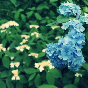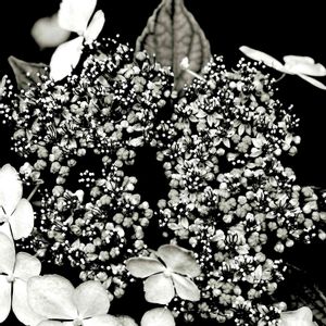 マニアックショット 第何弾か忘れた 本当の花の方にフォーカスしてみた ガクアジサイってオシャレ 周りに装飾花を配して もしゃもしゃ感がいいね!