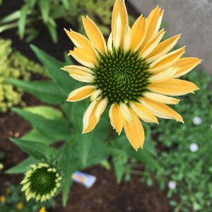 エキナセアグリーンジュエルがのんびり開花している間エキナセアアロハの方が追い越せとばかりに~🌼 黄色いお花はあまり選んで買わないけれど、ジメジメしたこの時期気分を明るくしてくれますね~♪