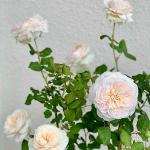 たくさんの蕾をつけたER バーバラオースチン。強風が当たらない場所へ移動させました。去年は数枚ほどの葉がうどん粉病にかかりました。トゲはほとんど見当たらず、隅々まで柔らかな花姿です。