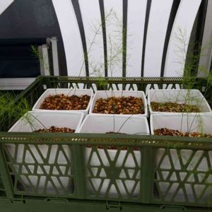 アスパラガス、4週間目🌱 卵のパックからの植え替え🌿 一鉢に1本ずつ残す予定✨ 深めに植えてしまったので、後日植え直そう💧