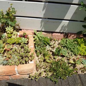 関東梅雨あけました!! 暑い、暑すぎる🤮 地植え多肉、ぼろっぼろ、、 遮光が難しい、、、 南西向きだから、あっつい時間に直射ガンガン、、、 まあダメ元で植えたので、秋に盛り返してくれたらいいし、だめだった品種はもう植えませーん。 もしくは秋に地植えして、育ったら梅雨前に救出、がいいかもなー🤔 メモ✍⇒オウレイ、チョコレート錦、ティチュバンスNG。 斑入りタイトゴメも下葉ポロポロ。 ジョイスタロックは以外にも無事。 万年草も無事! コメントやいいね!を下さった皆さんのところに行く前に自分の記録としてアップすることが多くてすみません🙏