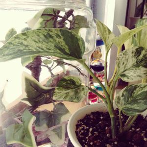 ポトスとケロタ(´∀`*)🐸 飼育ケースに本物いれたげたいけど、オシッコで枯れちゃうから、眺めるだけで我慢してね😆