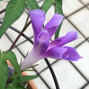 通常の朝顔とはだいぶかけ離れた葉が楽しい。早く咲かないかなー。