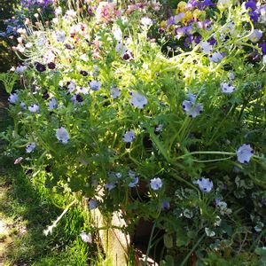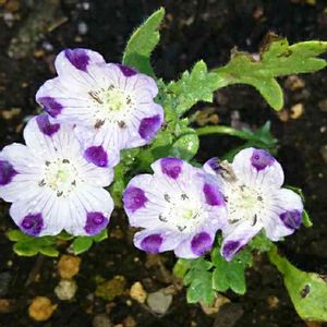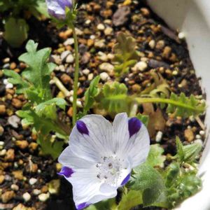 ネモフィラ マキュラータ 去年のこぼれ種で咲いたよ🎵
