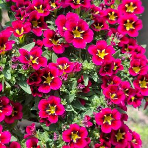 なっが~いお名前のカリブラコアさん ド派手に満開です😄 冬越しした🌺ハワイアンフラッグさん アレレ?😓 えらくコンパクトになって…😵 お花の大きさ昨年の半分くらいです😥 🌺レッドクーペリー このコは大きさそのまんま😄 なが~い蕊が変わらずかわいい💓 🌹タマラさん、イイ感じです😍 色がステキ😚 ベルノニアクリニタ 開花しました💜