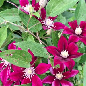 1,2枚目 セイヨウニンジンボクの枝の間から、去年よりも背高くベルノニア クリニタが咲きました。 3,4枚目 我が家で咲くボタンヅル…旺盛です💦 青空バックに映えますね✨ ⚠️ 我が家の庭で、今年蔓延ってるヤブマメ? 地下にあるムカゴを駆除しないと来年も出てきますか?