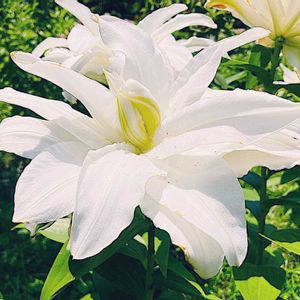 華やかさと気品を感じさせる八重咲きの百合・「ローズリリー・アイシャ」で、おはようございます🥰🤍🕊🍃🫧✨ 百合にしては珍しく、甘過ぎず、重たさを感じさせない爽やかな香りが魅力でした💞 一般的なユリは北半球が原産地ですが、この「アイシャ」は、日本の新潟県や高知県などの生産地で栽培されているようですね🇯🇵 八重咲きの大輪で、白い花弁の中心に淡いライムグリーンのようなラインがほんのり入るのが特徴。 バラのように幾重にも重なる豪華な印象から、花名に"ローズ"とついたのだとか❣ 因みに、品種名の"アイシャ"とは、アラビア語の「ʿāsha (アーシャ)」に由来。 "安寧な良き人生を送る者"といった意味で、イスラム教の預言者・ムハンマドの妻の一人・アーイシャ・ビント・アブー・バクルの名に由来。 彼女は、ムハンマドの最愛の妻であり、イスラム教の偉大な学者の一人として人々に尊敬され、信仰の対象にもされていた女性のようです👸 ー花言葉は、「無垢」、「高貴」…他。