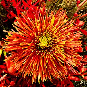 特異なスパイダー咲きと火花のような鮮やかな色彩の花弁がモダンで華やかな印象を与えていた、エントランス装花の洋菊・「チスパ(Chispa)」で、おはようございます🎇🌼🤗🌼🎇 "チスパ"は、近年人気が高まっているマムの一種で、中心部はブロンズに近い濃いオレンジ色で、外側に向かうにつれ徐々に黄色へと変化する美しいグラデーションは季節によって変化し、低温期の冬にはより赤みが強くなる特徴があります❣️ また、花材の自由なスタイルを可能にするポテンシャルの高さも花を生ける人のインスピレーションを刺激し、新しいフラワーデザインの世界を拡大しつつあるように感じます🌏💞🌼 …因みに、チスパを品種改良して世に送り出したのが、オランダに本社を置く世界最大級の菊の種苗会社"Deliflor Chrysanten B.V.(デリフロール・クリサンテン)"🇳🇱 https://deliflor.nl/assortiment そして、日本国内の販売特許を担っているのが、静岡県浜松市にある"デリフロールジャパン(株)"です🇯🇵 https://www.deliflor.co.jp/ ー花言葉は、「高貴」、「閃き」…他。