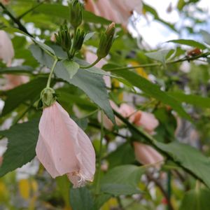 「ウナズキヒメフヨウ」頷姫芙蓉 淡いピンク 咲くやこの花館 1/12 今年初めてです
