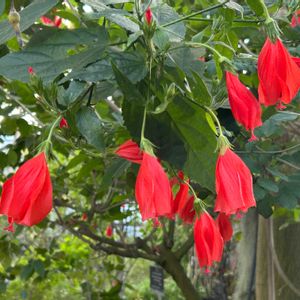 今日、1つめの投稿です。 🏷️真っ赤な火曜日 ☆ ウナズキヒメフヨウ 新宿御苑にて 11月7日 ① 下を向いて咲いてます。 これが満開の状態だそうです。 ② 何に、うなずいてるの? 赤いドレスのようね〜 ③ 蕾は上向き! あぁ、これから、うなずくのね💡 ☆ ④⑤ 西伊豆に向かう途中の 鮎沢PAにて (11月11日)