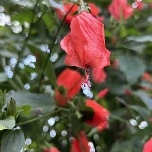 いつも下を向いてるスリーピングハイビスカス🌺 大雨の後で皆んな更に下を向いてます☔️☔️☔️