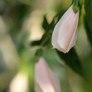 ウナズキヒメフヨウ [頷き姫芙蓉] もともとのヒメフヨウは花が上向きですが、ウナズキヒメフヨウの花は生長するに従い、だんだん下向きになります。 花言葉は繊細な美 寄り添う2つの花 お二人の幸せをお祈り申し上げます