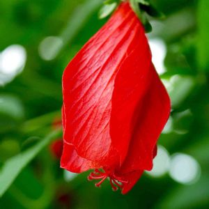 新宿御苑の温室#1 ウナズキヒメフヨウ アオイ科 (頷き姫芙蓉) Malvaviscus arboreus しぼんで下を向いている様に見えるけど、これが満開の状態とのこと😄