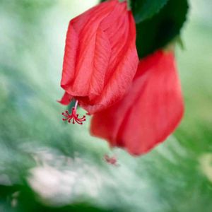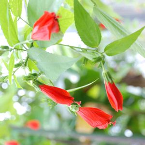下向きに咲く赤い花。