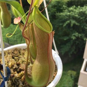 梅雨な上に水苔以外でのネペンテス栽培初めてで蒸れが心配な位の量の枯葉を取り除き通気性を回復させました。 連日の日差しで新葉も赤く色づきました。 上位袋も出てきてこれからの時期が本当に楽しみです。やっぱりネペンテス買って良かった。この家で飼えないと思ったけど大丈夫そう。。 ところで挿し木は木質化してない部分をした方が良いと聞きました。挿し木一度木質化したのをやって家族に破壊され失敗したので分かりませんが、もしそうならこの株では木質化してない部分でやってみようかな。