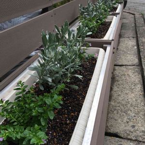 コンテナガーデントマト園芸レイクタウン店さんで購入してきた子達を植えました✨ ここは陽当たりが良すぎて困ってました😭 お店の方に丈夫なのを教えてもらい、この子達に決定しました✨ いつも丁寧に教えていただき助かって います😊✨ありがとうございます✨