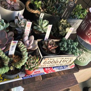 おはようございます٩(*´꒳`*)۶♡ 昨日、GSで存在を知ってから行ってみたいと思ってた、コンテナガーデントマト園芸レイク店さんへ多肉狩り♬🚗💨 戦利品いろいろ♬*゜ 多肉ちゃん🌵🌵🌵もいっぱいでしたが、お花もいっぱい❁❀✿✾そして花器、鉢などのアイテム系もたくさんあって、幸せ空間でした⤴⤴⤴ 私の多肉病が、仕事の相棒にも感染しつつあり😅 多肉狩り2度目にして寄せ植えしてみたい!と、しかし家でひとりでは不安… どうしよう〜ってなってたけど、トマト園芸さんは、なんと!寄せ植えスペースが✧ \(°∀°)// ✧ しかもプロに寄せ植えしてもらって、ソレを目の当たりにした相棒は更に、多肉熱が高まり(↑▽↑)♡ ハマり度ÜP♡ ホントに楽しい時間でした(*^▽^)/★*☆♪ ちょっと遠いのが残念ですが、可愛い多肉ちゃんたちとステキなお店の方々に会いに必ずまた、お邪魔したいと思います♬*゜ ありがとうございました♡