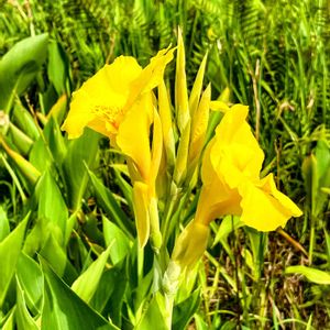 黄色いカンナの花 糸米地下道入口の花壇に 朝の散歩道
