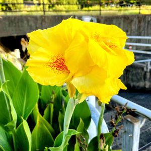 黄色いカンナのお花 朝の散歩道 バイパスの下を通る地下道側に