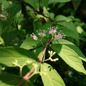 小さい可愛いらしい花がついています💓 検索してみたら ムラサキシキブ??? わけていただいて挿し木したことはあったけど ほんとかなぁ😅 そうだったら嬉しいな🎵😍🎵