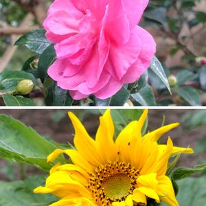 公園で咲いてるお花 サザンカとヒマワリ 冬?夏? 秋はどこ?🍁🍂🍁🍄