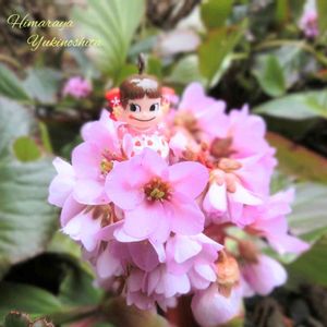 毎年この季節になると咲いてくれるヒマラヤユキノシタ🌸 ペコちゃんもお花に囲まれて嬉しそう🎶🎶 ペコちゃん祭りに参加しま~す💗