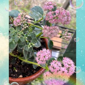 🍀🌻🪴💐🌹🌻🍀 🍀🩷ミセバヤ🩷🍀 今年もミセバヤの花が咲く季節になりました、花がピンクで葉が薄緑のコントラストがいいですね🌸💮🌸 💐ミセバヤ全般の花言葉は(大切なあ なた)、( つつましさ)です 💐ミセバヤは、ベンケイソウ科ムラ サキベンケイソウ属の多年草です、 多肉質の丸い形の葉が特徴的で、 秋になると美しいピンクの花が咲 きます 💐ミセバヤは伸ばした茎の先端に球 状に小花を固めて咲かせる様子を 玉にみたてたもので、別名タマノ ヲ(玉緒・たまのを)といいます 🍀🌻🪴💐🌹🌻🍀