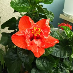 先週末に…。 お迎えしたハイビスカス🌺 寒さにも暑さにも強いらしいです(*´∇`*)❣️ 買ったときは 手前の子は もちょっとオレンジっぽかったんだけど 赤もまた いいカンジ( *´艸)❣️ 色が変わるのかしら⁉️