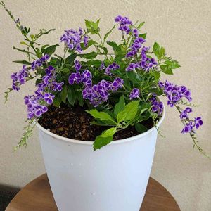 こんにちは👋😃 帰って来ていた長女が、母の日の代わりに、買ってくれたジュランタ。 1日遅れましたが、少し大きめの7号鉢に、植え替えました。 イングリッシュラベンダー用に買ってきた鉢に、先に植え替えました。
