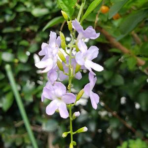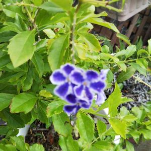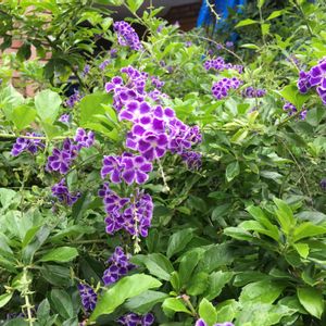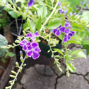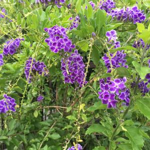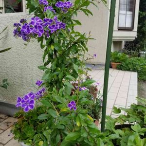 こんばんは🌙😃❗ ジュランタ7月に咲いていて、切り戻しから、約2ヶ月 昨日から花が咲き始めました。 紫の小花が、可愛いです。 白い縁取りが、素敵です。 軒下の棚に、います。 また、あえて嬉しい。 ありがとうね。 真冬は、地上部が、枯れるときが、ありますが、 春にまた、芽吹きます。 水やり、忘れないようにしないと、いけませんね。