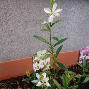 我が家にやってきたコンパクトガウラ。白い子が咲きました❗ 白蝶草の名にふさわしい花姿。 とても嬉しくなりました。