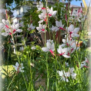 紅白のガウラさん 咲いてくれました(*ˊᵕˋ*)੭ ੈ 風にゆらゆら揺れて 癒されています🍀*゜