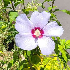 こんにちは👋😃 カインズホーム太子で、見かけた白いムクゲ。 1つだけ綺麗に咲いていました。 もう少し良い株なら、 お迎えしていましたが、 葉っぱも色薄く、あまり健康そうには、見えませんでした。 残念でした。