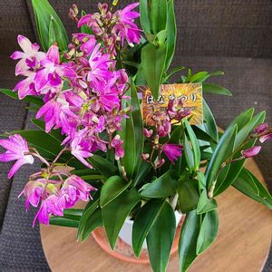 おはようございます。 デンドロビューム キンギアナム はなまつり タグを写すために、少し斜めから、撮りました。 花茎が、絡みあっていたので、ほどきました。 香りが、ある蘭でした。 少しお安くなってました。 満開になったら、正面から、撮りたいですね。