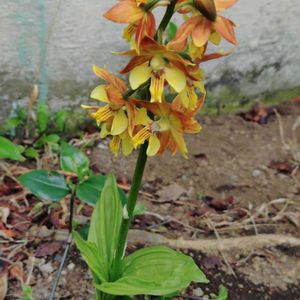 タカネエビネ(ラン科)神奈川県より 2023.05.09撮影📲在来種 ジエビネ&キエビネの自然交雑種です❗️ 数年前から、こんなの出て来た、って見せて貰いました😊地主さんは、何故此処に生えているのか?分からないそうです。原始林みたいな場所です🌱🌿🍀🌲🌳 株の身長:実測52㎝