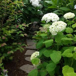 今朝のお庭。 アナベルが、きれいに咲いてます。 とても爽やかです。😊 おぎはら植物園で去年買って植えた2年目の株。かなり大きいお花です。