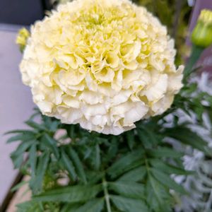 麦わらの〜帽子の き〜みが…🎶🎶🤭 マリーゴールド1つお迎えしたよっ♡ 大っきなまんまる顔でね⚪️真っ白のコなんだよ⚪️